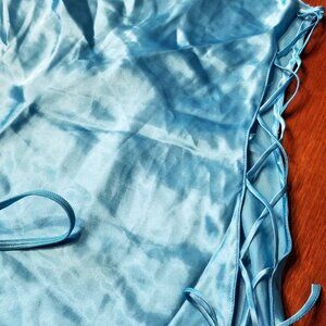 Gorgeous blue strappy cami with matching thong underwear. Cami is hip length and both sides are open braiding. NWOT size M, satiny polyester.