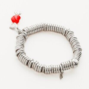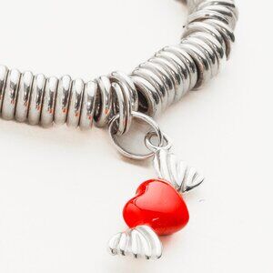A tactile and fun alternative to traditional charm bracelets, the Sweetie charm bracelet from Links of London is crafted with elasticated sterling silver rings, and features a red winged heart charm.