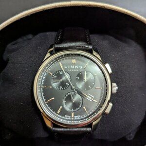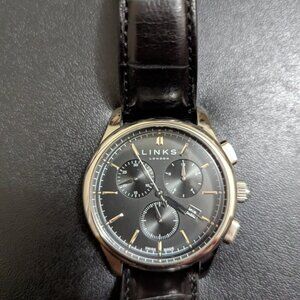 Black and silver men's links of London swiss made watch. Comes with the box . No battery but works perfectly fine.