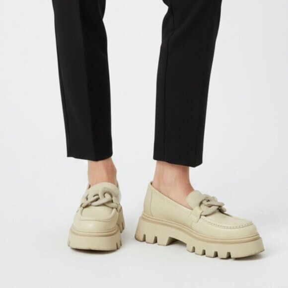 L'intervalle Cream Pebbled Leather Chunky Chain Platform Loafers Size EU 41