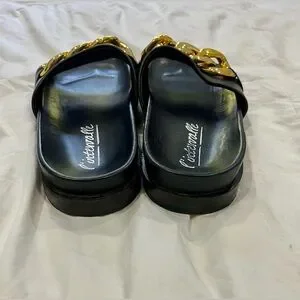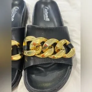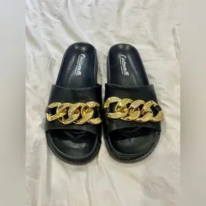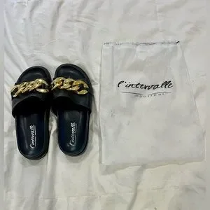 - Black Slides with Gold Cuff Detailing