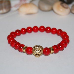 Lion Bracelet,Red Howlite Bracelet, 8mm Gemstone Beads,Red Lion Bracelet