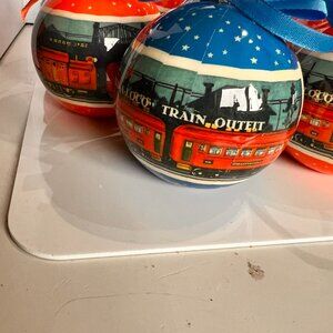 Celebrate the holiday season with this charming set of Lionel Train Christmas ornaments. The collection includes 13 plastic balls (one is missing) featuring intricate train designs, perfect for adding a touch of nostalgia to your tree. Each ornament comes in its original box, making them easy to store and display year after year.