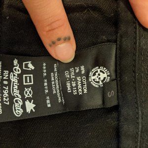 Black and white stripe cotton twill zip up closure with removable snap on straps.