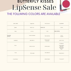 Discover LipSense's vibrant lip colors. Colors available are listed in the photo. Perfect for any occasion.