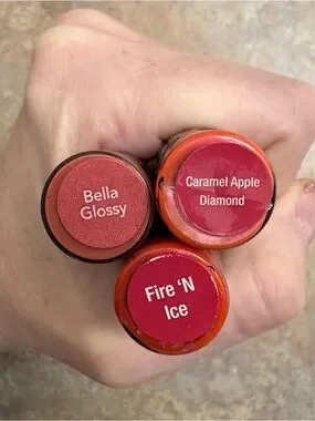 A bundle with 2 Lipsense and one Lipsense gloss Bella Glossy Caramel Apple Diamond Fire & Ice All new and sealed