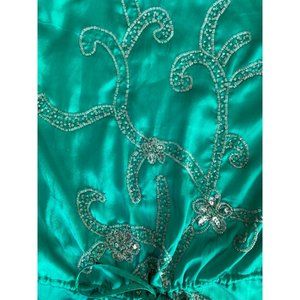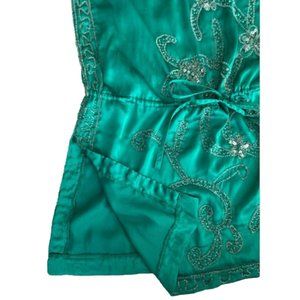 Lipsy Women Off Shoulder Mini Strapless Dress Beaded Tie Waist Green Size M/ L