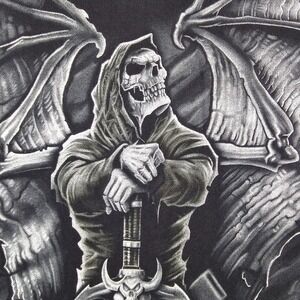 Liquid Blue Shirt Mens Large Black Archangel Grim Reaper Double Sided Y2K