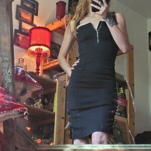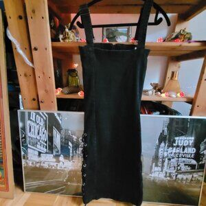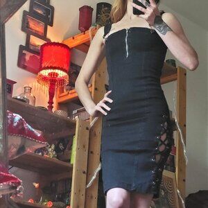 Liquor N poker black denim mini dress side criss cross slits uk size 6