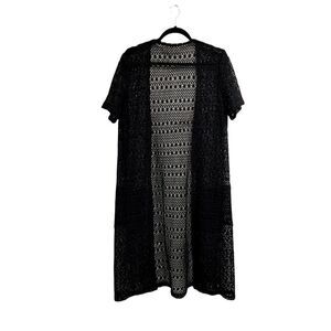 Lisa KLINE Black Open Short Sleeve Cardigan Duster Swimwear Kimono Coverup L