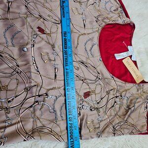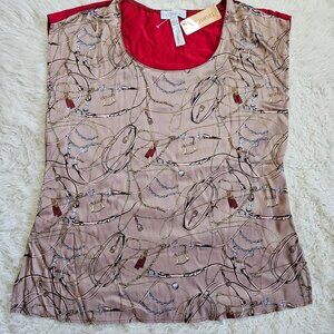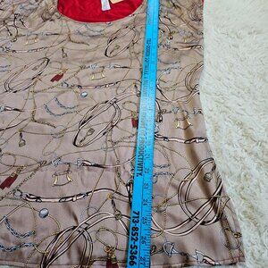Lise Charmel Women's Silk Blend Chain and Belt Print Red Back Blouse Top Size XL