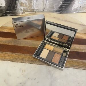 Lise Watier eyeshadow palette with five colors in sleek silver packaging.