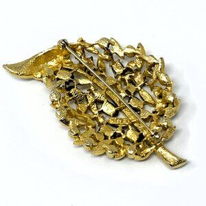 Lisner Gold-Tone Leaf Rhinestone Brooch