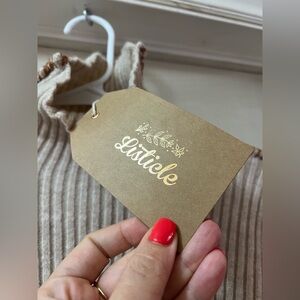 Listicle Cozy Beige Unique High Neck Long Sleeve Sweater Size Small