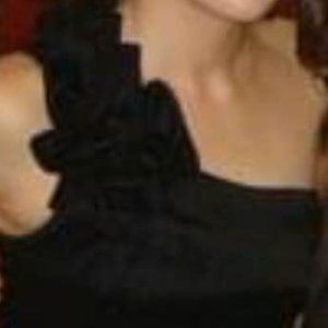 This size 2, structured cocktail dress is the perfect LBD to add to your wardrobe! It's one-sleeved, with ruffles detailing the neckline. The material is 97% polyester and 3% spandex, creating the perfectly form-fitting silhouette. There is a hidden zipper on the left side for easy dressing. Original price was $125 from Le Chateau in Toronto, Canada. Great shape, I just don't fit into it anymore!