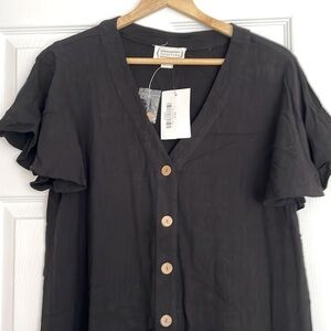 Little Black Linen Dress - New with Tags. This button down Loveriche linen blend dress is 34” long from shoulder seam to hem and 20” pit to pit for a float, comfortable fit. It also has functional buttons. New with tags, it was originally priced at $98.