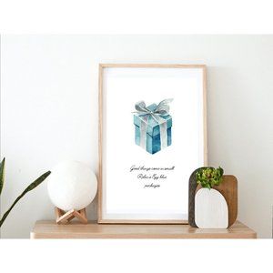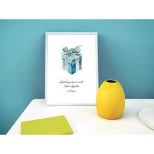 Little Blue Box Wall Art, Robins Egg Blue Gift Box, Breakfast at Decor
