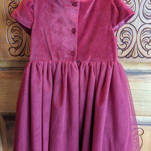 Sweet formal dress for a sweet little girl! Red velvet upper with a little velvet bow in the front and buttons in the back, tulle bottom and cute cap sleeves! In perfect condition.