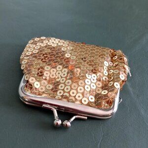 Little Gold Sequin Coin Purse Vintage Antique Old stocking gift for woman girl