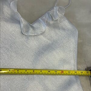 Elegant silver slip mini dress with ruffle details. Perfect for special occasions. Perfect condition