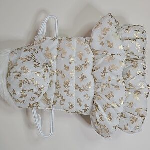 Little Lass White 4T Hooded Zip Up Vest with Gold Floral Pattern