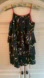 The dress is made in smooth and lightweight polyester (silky feel) in a tropical floral print, and has delicate spaghetti straps in with gold adjusters. A casual sundress look.Greens, blue, taupe, coral and cream. Like new, extra button still attached.