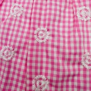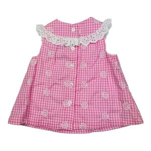 Adorable Pink Gingham Dress with eyelet ruffles and embroidered design throughout.