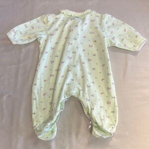 The Little Me Green Footies One Piece is designed for ultimate comfort and warmth, featuring a soft green hue and enclosed feet. Crafted from cozy materials, it ensures a snug fit with its long sleeves and easy-to-use snap closures. Perfect for keeping little ones comfortable throughout the day.
