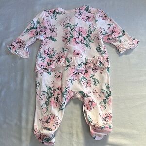 Little Me - NWOT - Dream Floral Pink and Green Footie One Piece Sleeper