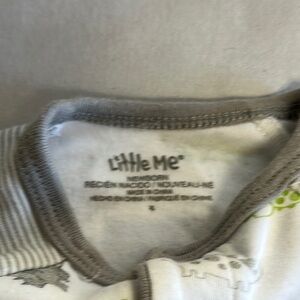 Little Me - White and Green Dinosaur Footie One Piece Sleeper