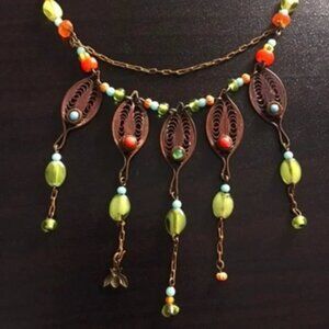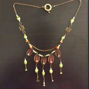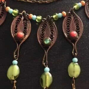 Unique and gently loved necklace from early 2000/Y2K. Purchased from 'Little Mermaid' in Thunder Bay, Ontario. From the tiny little bee charm to the elegant chain-link details, this artisan made necklace is a once in a lifetime. I wish I remembered who the artist was, but it was so long ago. Unsure of the material, but it looks like copperwork.