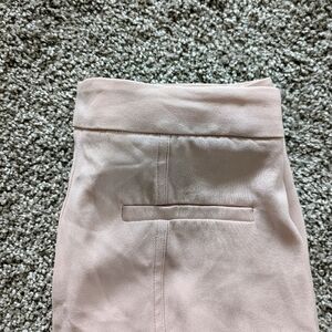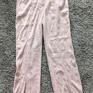 Really cute baby pink pair of trousers from Little Moon (Aritiza). They are a pale pink colour, has pockets, clasp closure, and a front split up the hem on the shin of the pants!