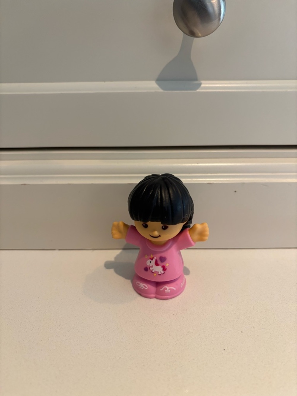 Cute pink toddler figurine wearing a unicorn shirt. Soft, bright pink color adds playful charm. Easy for small hands to hold and enjoy. Please see all pics !