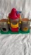 Little People Lil’ Kingdom castle and accessories. Trumpets blare and drawbridge opens when the flag is pressed. Includes king, queen, throne, pegasus horse, dragon and dragon’s lair. Castle and accessories show minor scuffs from regular play. Dragon’s lair has a bit of discolouring on the top. See photos for condition.