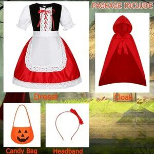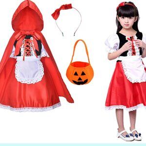 Little Red Riding Hood Costume for Girls Halloween Costume Party Set with Cloak