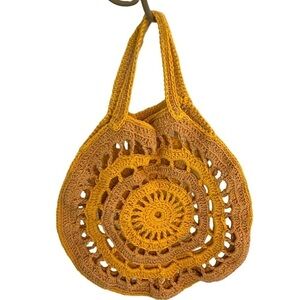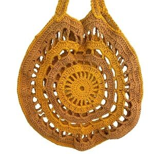 Sunny and cheerful little round crochet pouch to carry just the essentials. Handmade bag has two short handles so you can carry the bag in your hands. Looks adorable with summer dresses.