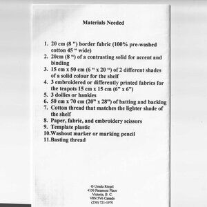 Made in Victoria BC by Ursula Riegel, this is a pattern to create this sweet tea-themed wall hanging/mini quilt, featuring reverse applique. All instructions and patterns for the cutout teapots are included. It in new condition - never used.