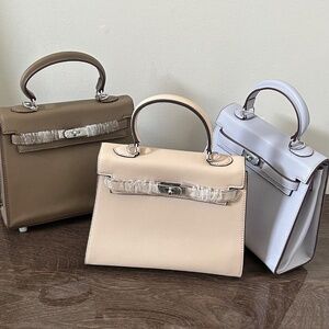 Small elephant gray satchel bag with decorative strap and mini padlock