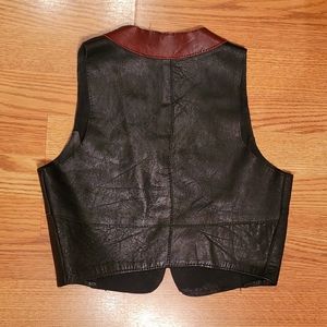 Little sleeveless leather jacket in black and Brown, handmade by a real leather worker in Québec, Canada.