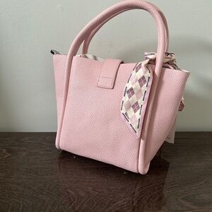 Little pink bag with decorative strap and little scarf