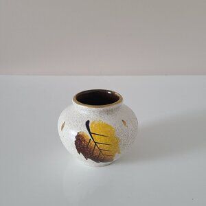 Beautiful little vintage ceramic round  hand painted vase with leaves design. 2 3/4'' tall, 3'' wide. Perfect condition.