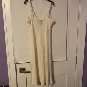 Beautiful little white dress reaches slightly past knees (depending on torso length) size 2P, NOT STRETCHY.