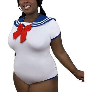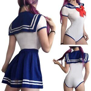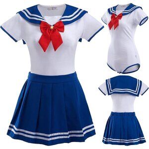 Littleforbig Cotton Sailor Blue Pajamas Bodysuit Cosplay Magical Onesie Skirt