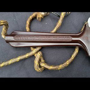 This unique and unusual item is in used condition. Due to the shape of the electrical cord, this item is for decor/display purposes only and should definitely not be plugged into an electrical outlet. I didn't remove the plug as I didn't want to modify the item's integrity. I am not responsible if you should choose to do so. The handle is plastic and the iron is metal.