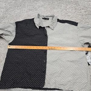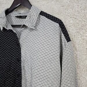 Liv by Habitat Top Womens Large Gray Black Button Up Long Sleeve Crinkle Travel