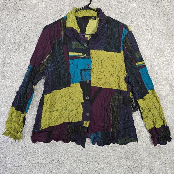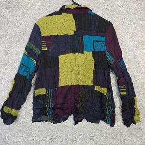 Liv by Habitat Top Women’s Medium Colorful Crinkle Button Up Art to Wear NWT