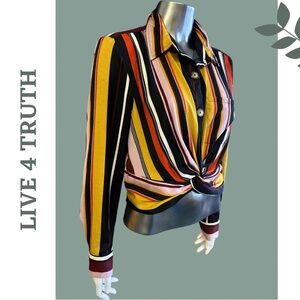 Live 4 Truth Striped Button Up Pullover Shirt Cropped Multi Color Size Medium