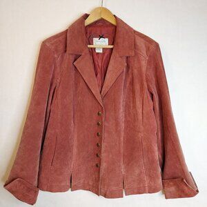 Live a Little Suede Leather Jacket Women's M Rose Pink Snap Front Lined Y2K VTG