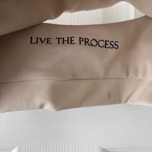 Good condition with minor dye transfer throughout from the straps. The majority of the dye transfer is on the inside of the bra and not visible when worn. There is 1 tiny spot on the sidethat IS visible when worn. Please see last photo