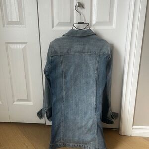 Stylish denim jacket with button-up front. Features dual chest pockets and side pockets. Ideal for casual wear.